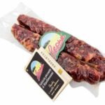 Salume dell’antica tradizione contadina Molisana realizzato con polpa scelta di suino, sale, peperoncino piccante e finocchietto selvatico. Il processo di stagionatura si completa non prima di 6 settimane. In tal modo il prodotto raggiungere una maturazione ottimale che garantisce una qualità nutrizionale e dietetica eccezionale. Al taglio il prodotto presenta un colore che va dal rosso vivo al rosso intenso; le parti di grasso ricorrono in giusta proporzione rispetto al magro e risaltano per il loro colore bianco. L’aroma dato dal peperoncino piccante valorizza i sapori tradizionali della salsiccia stagionata.