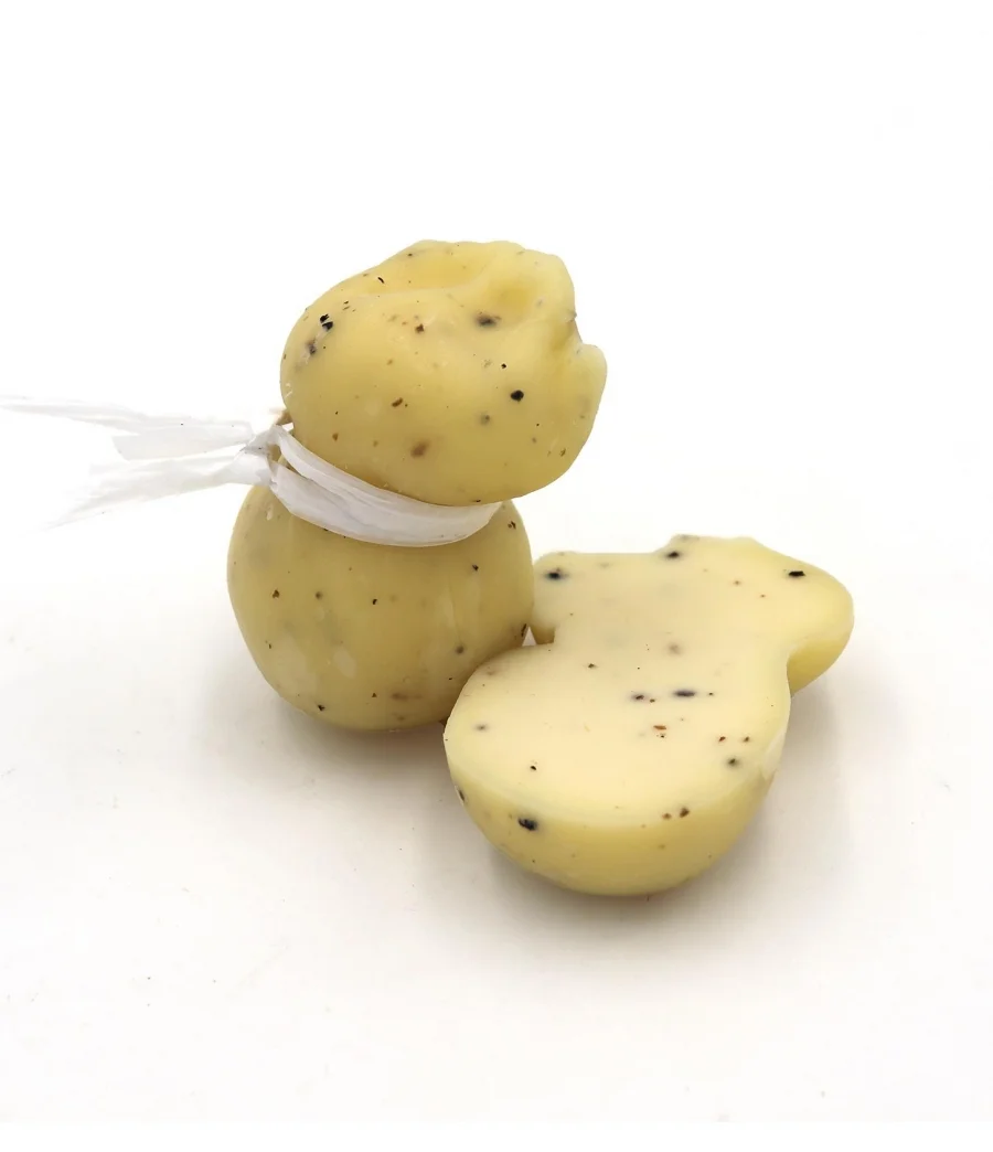 Formaggio a pasta filata il sapore è dolce con il gusto avvolgente e prelibato del tartufo nero molisano.