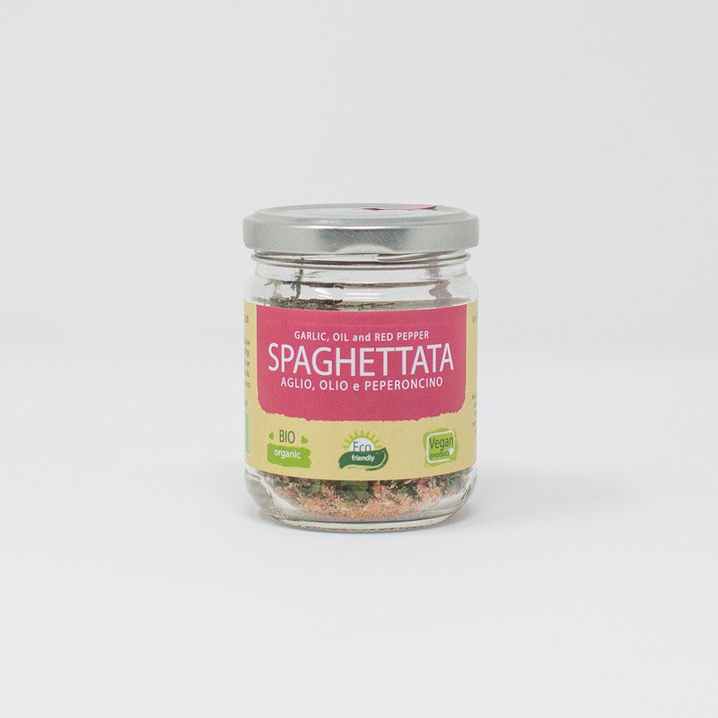 Preparato per aglio, olio e peperoncino: una gustosa miscela, naturale e biologica, a base di aglio e peperoncino per portare in tavola uno dei piatti più semplici e gustosi della cucina italiana.